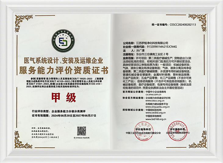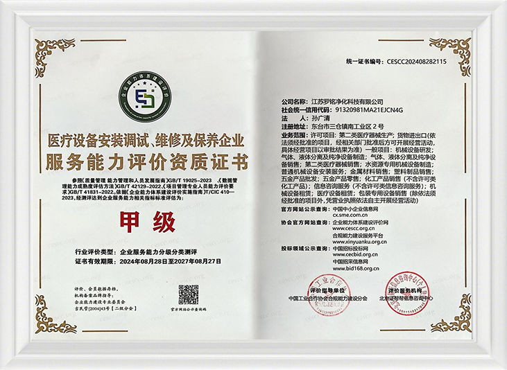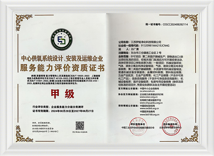 Merkezi oksijen besleme sistemi tasarımı, kurulumu ve işletimi ve bakımı kurumsal hizmet yeteneği değerlendirme yeterliliği