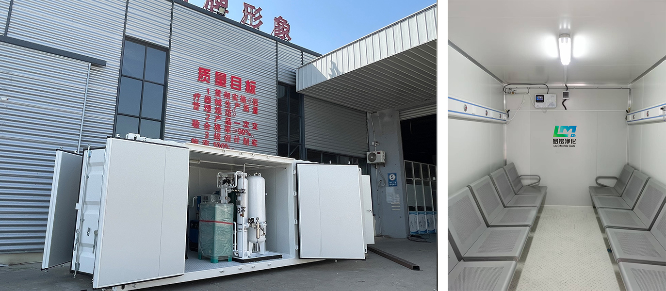 Jiangsu Luoming, müşterilerin fiili durumuna göre çeşitli tipte tıbbi oksijen jeneratörleri sağlayabilir: konteyner/römork/kutu tipi tıbbi oksijen jeneratörü, mobil oksijen çubuğu aracı (oksijen üretim alanı ve oksijen emme alanı dahil), oksijen istasyonu vb. Jeneratörler ayrıca güç kaynağının yetersiz olduğu alanlarda da mevcuttur.