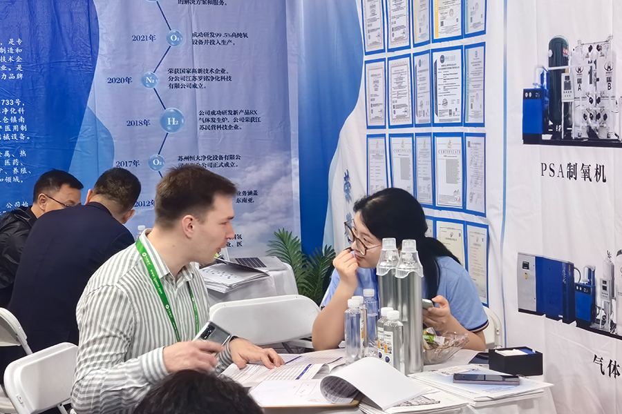 Sahadaki görüntülerden, standımızın oksijen jeneratörleri, nitrojen jeneratörleri, yüksek saflıkta oksijen jeneratörleri, gaz arıtma üniteleri ve gaz dolum ekipmanları dahil olmak üzere çok çeşitli ekipmanlarımızın resimlerini belirgin bir şekilde sergilediği açıkça görülüyor. Ayrıca Jiangsu Luoming'in sahip olduğu çeşitli ödüller ve nitelikler de sergileniyor. Enerjiyle dolup taşan özel satış ekibimiz, ziyaret eden müşterilerimize son teknoloji ekipmanlarımızı tanıtmak için derinlemesine sektör bilgilerinden yararlanıyor.